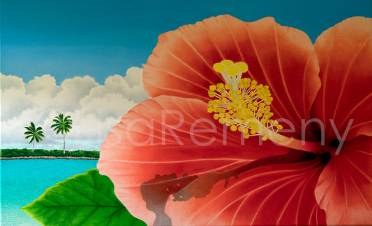 Commission 2005 Oil Painting - Hibiscus by the Bay