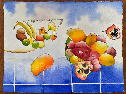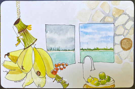 Archive - Watercolor + Ink on Paper - Cat Island Bananas x 2