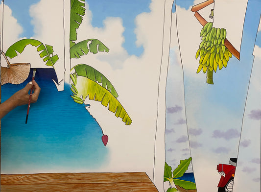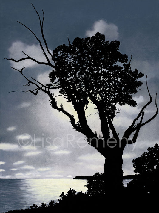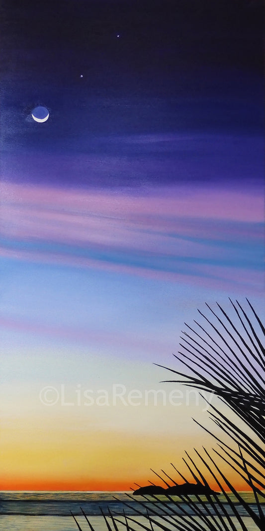 Oil Painting - Young Moon at Dusk, Cat Island, The Bahamas